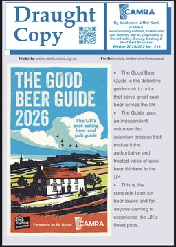 Draught Copy is the free newsletter of the Maidstone and Mid Kent, Gravesend and Darent Valley, Bexley, Medway and West Kent branches of CAMRA.
